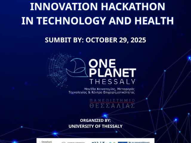 Το Τμήμα Ψηφιακών Συστημάτων του Πανεπιστημίου Θεσσαλίας, σε συνεργασία με το Τμήμα Νοσηλευτικής και την πρωτοβουλία One Planet Thessaly, διοργανώνει την Ημερίδα Καινοτομίας & Επιχειρηματικότητας την Πέμπτη 5 Ιουνίου 2025, στο Αμφιθέατρο του Τμήματος Νοσηλευτικής (Campus Γαιόπολις, Λάρισα). Η εκδήλωση μεταδίδεται και διαδικτυακά μέσω Microsoft Teams.